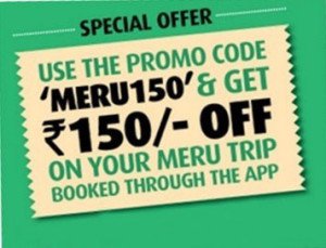 - Customer has to enter promo code MERU150 while booking through the Mobile App.